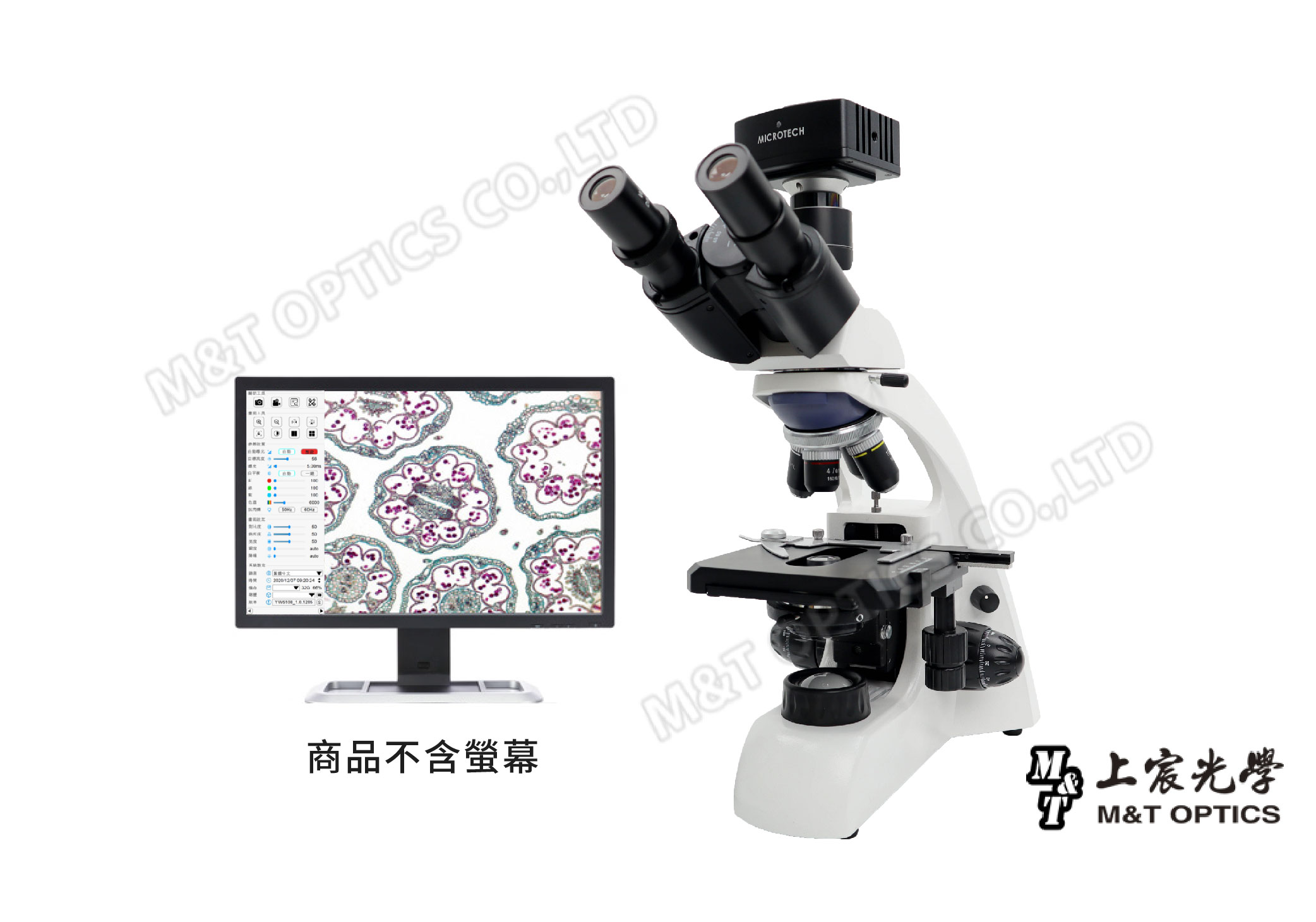 The wide-field eyepieces are matched with high-end achromatic objectives, and the eyepieces include a set of WF10X and WF25X. The third eye of the observation head is connected to the "MICROTECH M2 microphotography system" to provide HD high-quality real-time output and control of shooting records. It is quite suitable for teaching, biological experiments, and recording research results.