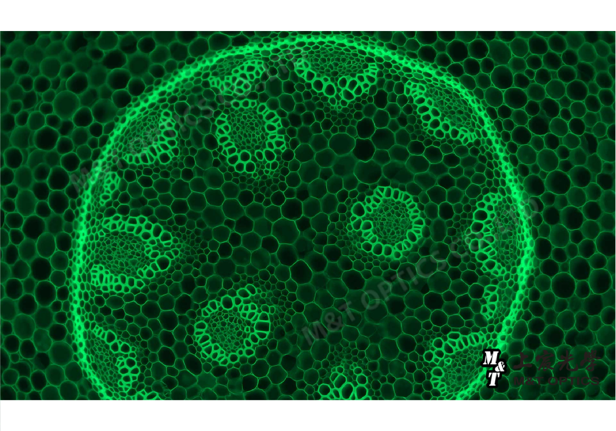 Cross-section of vascular bundles of Lily of the Valley flower - using Zeiss original fluorescence kit, 10x objective lens magnification