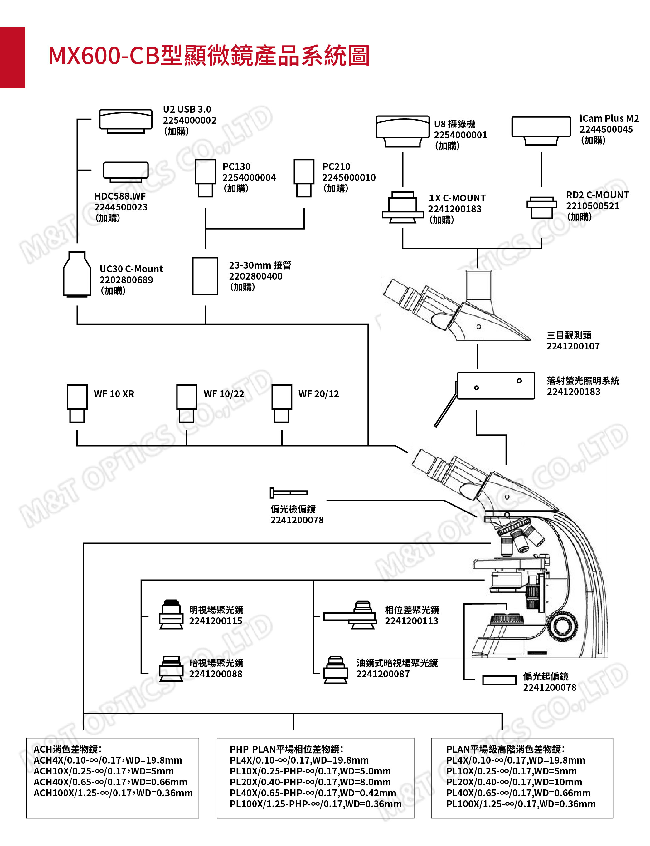 4X/0.10—∞/0.17. 10X/0.25-∞/0.17. 40X/0.65-∞/0.17. 100X/1.25—∞/0.17 |