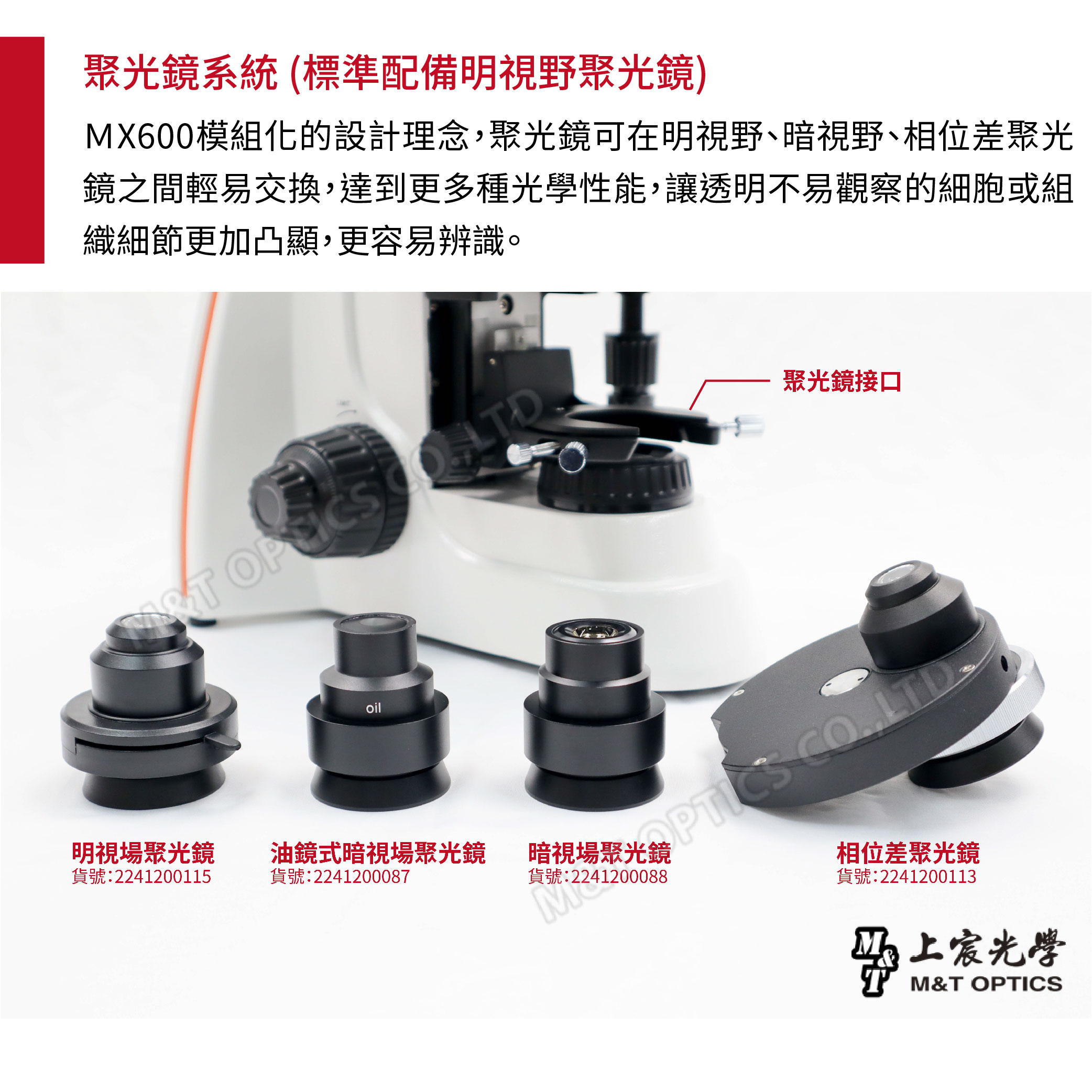 NA1.25, adjustable up and down, built-in field diaphragm |