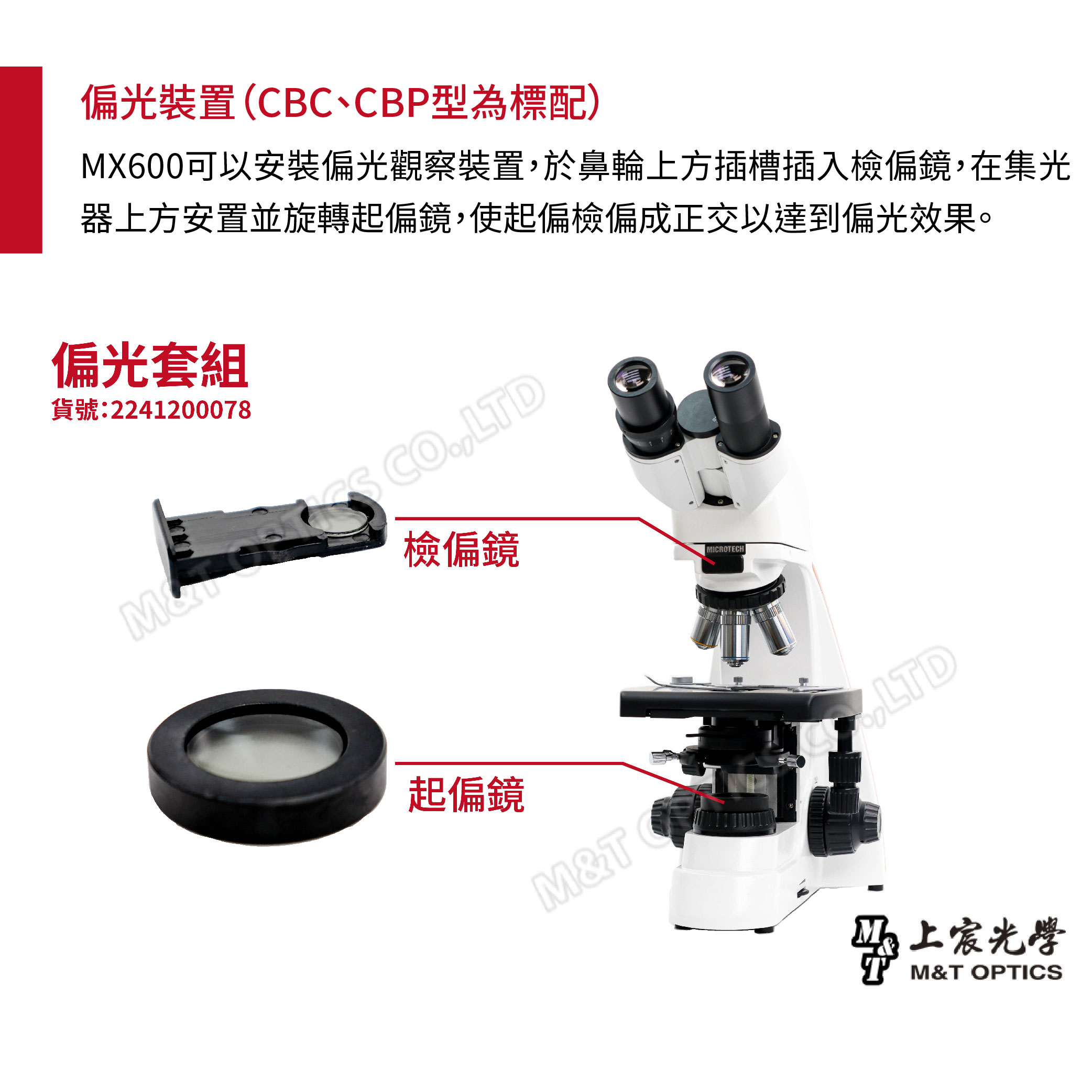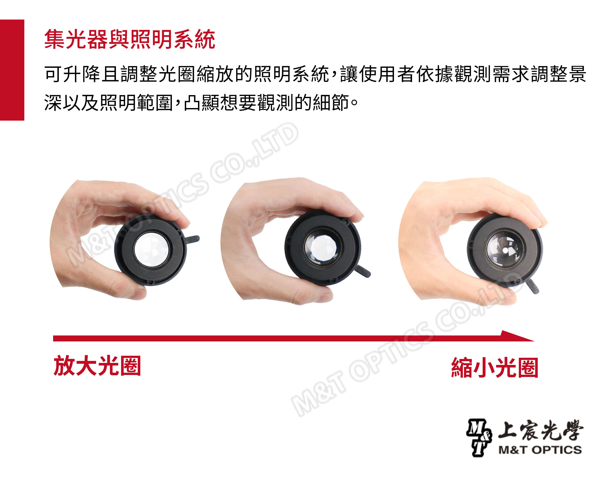 Transmissive plano-convex lens system, adjustable Kohler light field, attached with simple polarizer |