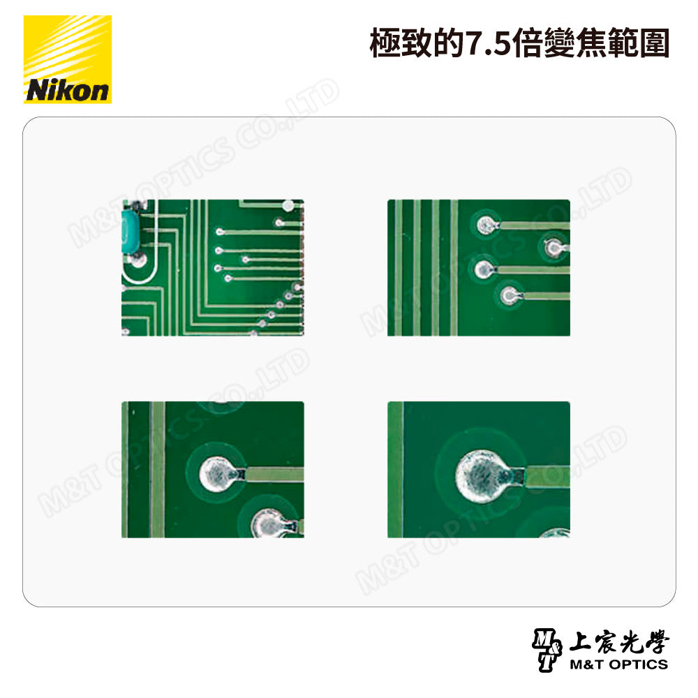 NIKON SMZ745顯微鏡具備 7.5 倍變焦與 115mm 的長工作距離,非常適合工業及生物醫學應用。採用新型全反射稜鏡,能呈現更明亮、高對比的影像;防霉設計讓顯微鏡即使在高溫高濕的環境中也能安心使用。