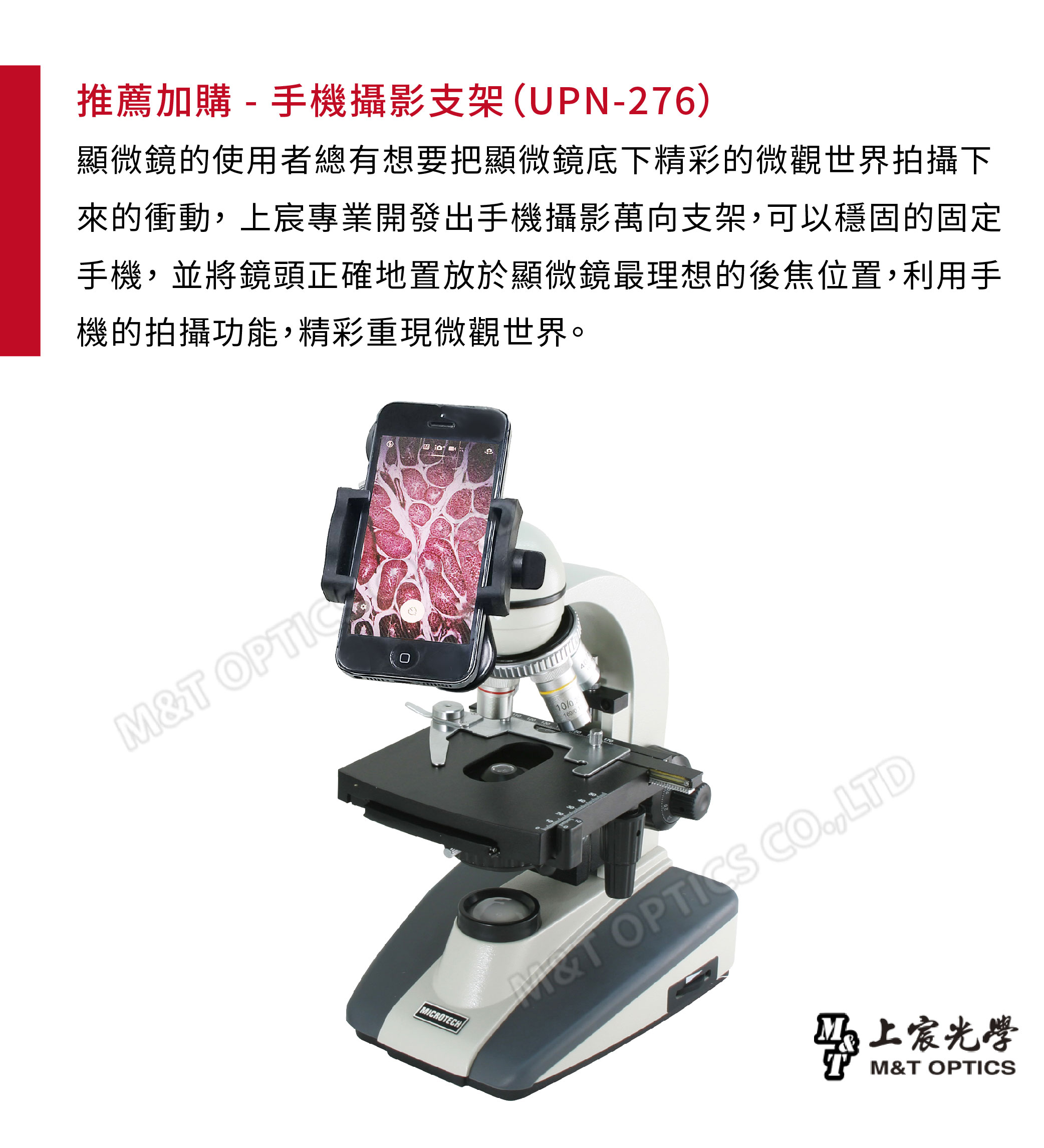 | 手機攝影 | 可加購UPN276CV快速手機攝影架座 |