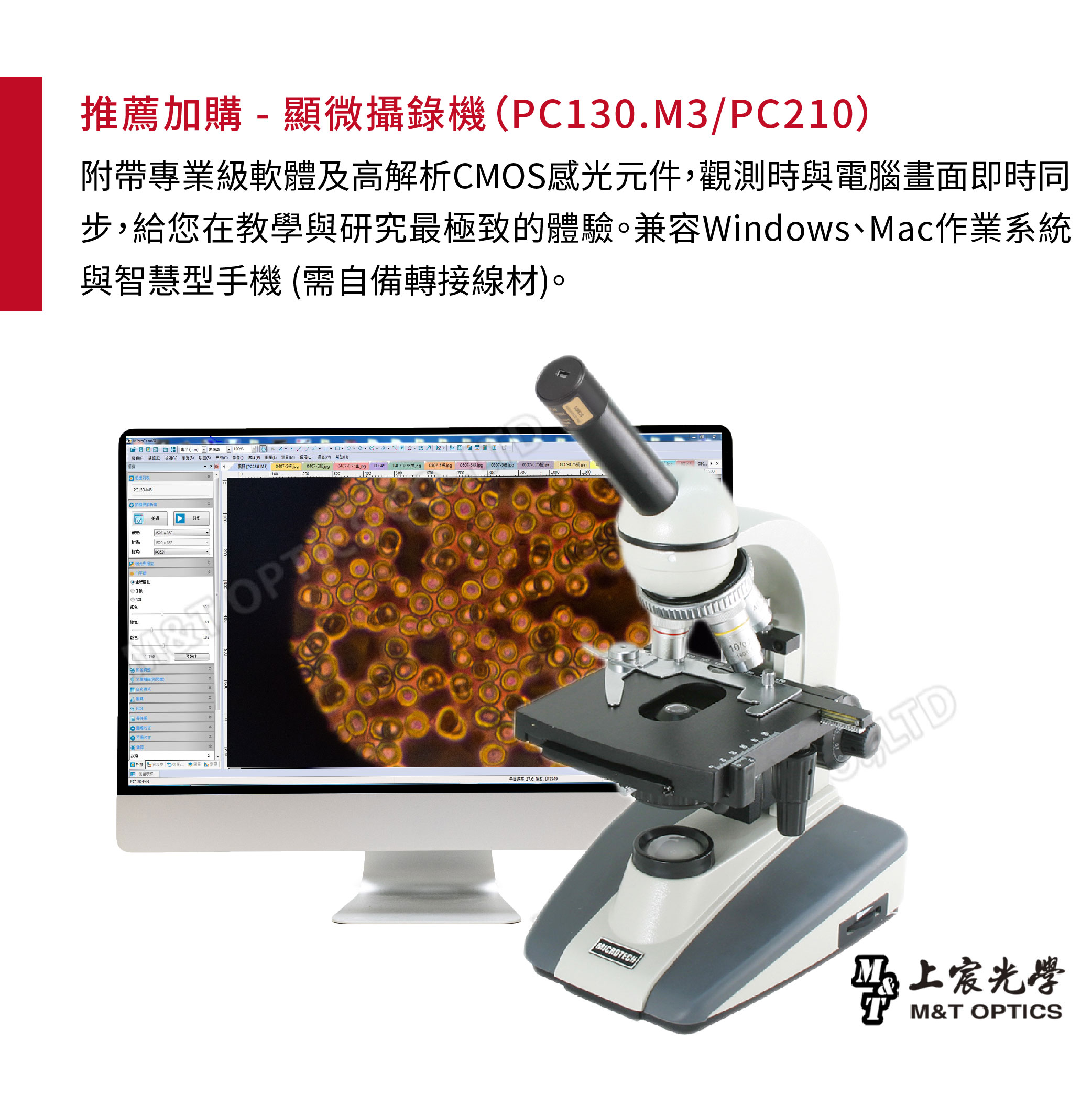 可加購顯微攝錄機 |