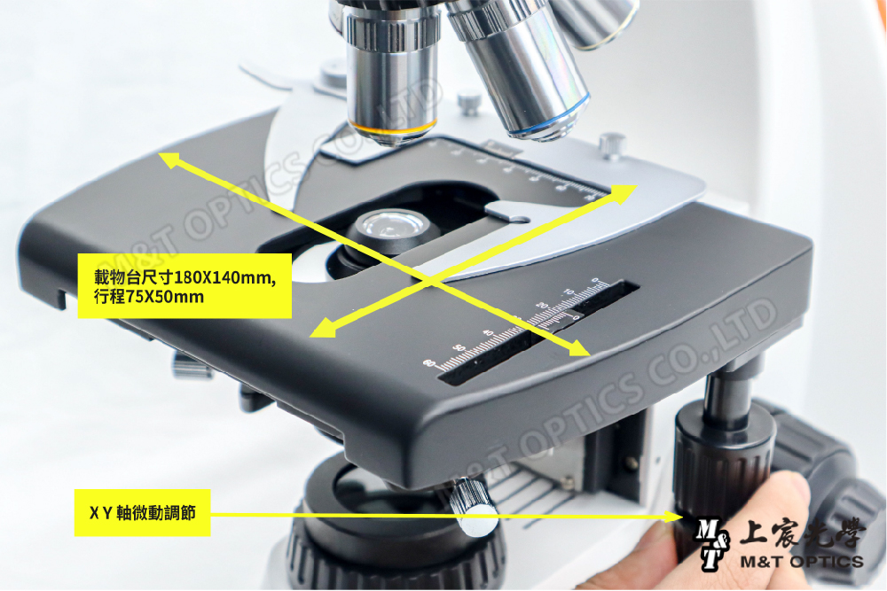 | 鋼絲傳動式載物台 | 尺寸180x140mm,行程75x50mm無齒條外露。 |