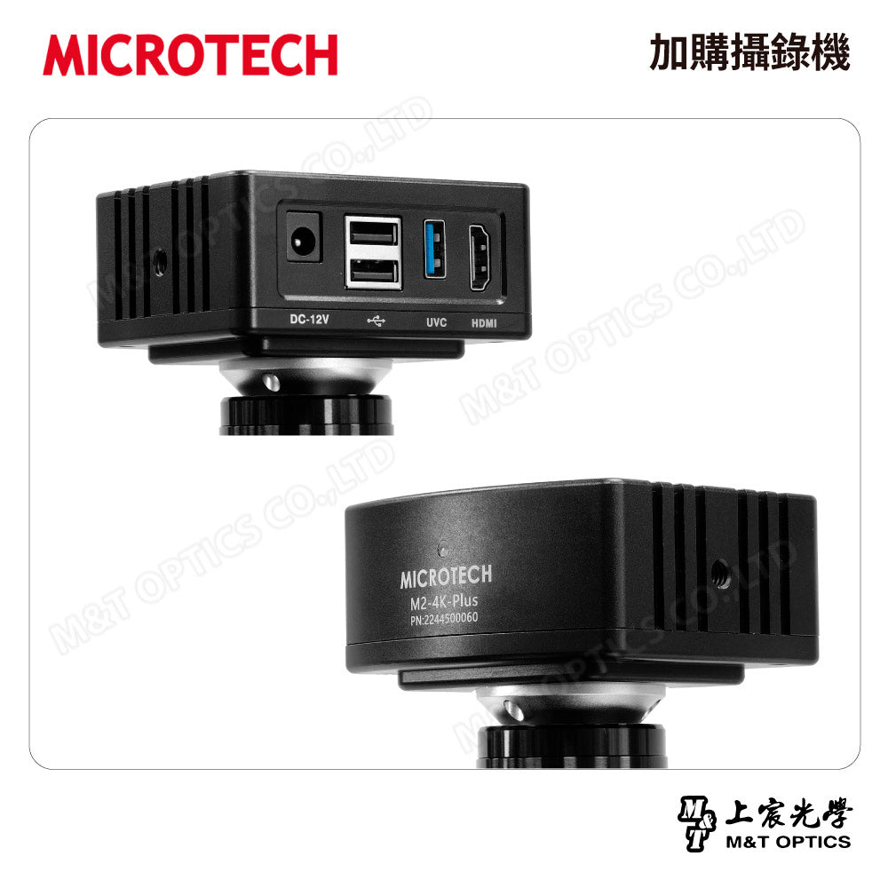 可選購攝錄機並搭配C-MOUNT SC1.0X轉接鏡(0.3X與0.5X不適用於本機型),進行拍攝與量測。採用 MICROTECH 攝錄機,具有微電腦平台,可HDMI直出影像、USB滑鼠直接控制、嵌入式完整拍攝功能與量測,是絕佳的免電腦顯微鏡影像解決方案。本產品可加購顯微相機: