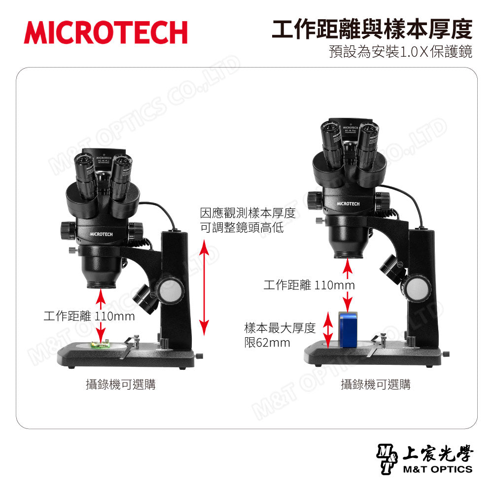 長達110mm工作距離,讓被測物與物鏡保持適當距離。適合需頻繁移動被測物(紡織、品管QC等作業)或需對被測物進行操作(組裝、焊接、雕刻)的使用情境。可應對較大較厚的被測物,或滿足在底部安裝治具的需求。工作距離不隨顯微鏡倍率改變而改變,讓您可快速放大、縮小視野。